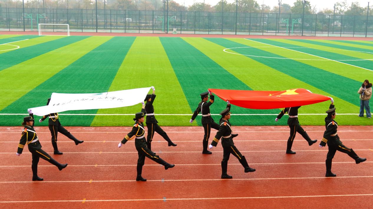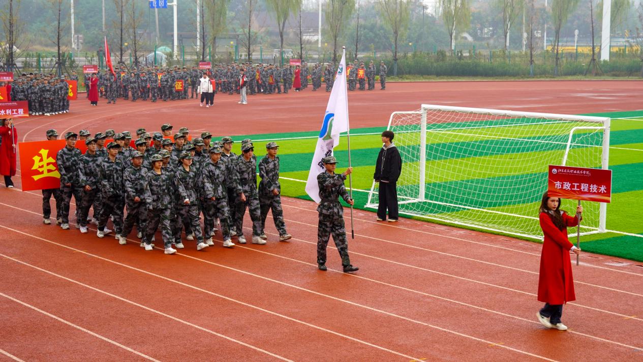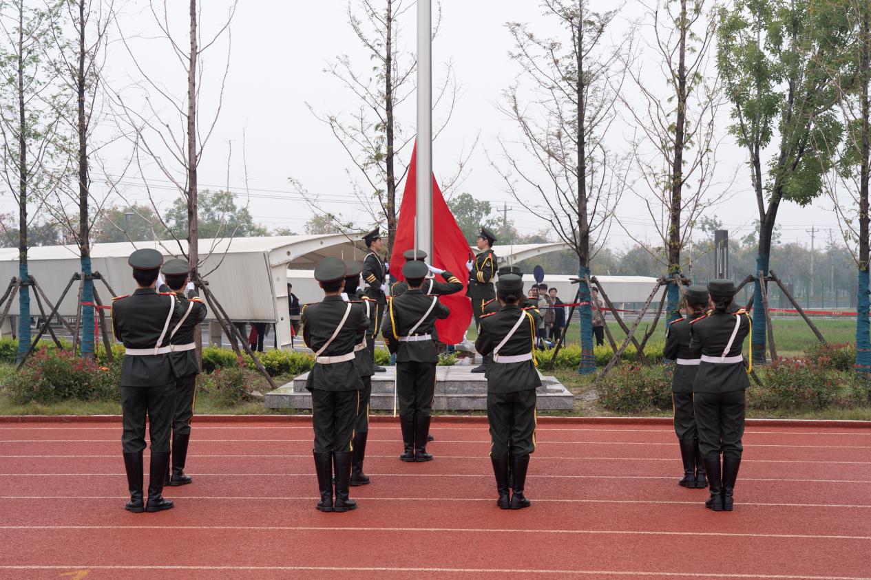开幕式前,国旗队、彩旗队、裁判员及二级学院方队依次通过主席台。随后,全体人员庄重举行了升国旗仪式。