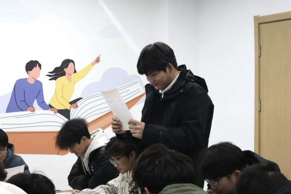 为让流程知识入脑入心,现场特别设置资料研读与自由讨论环节。同学们人手一份《发展党员工作流程要点手册》,边对照资料标记重点,边与身边同学交流感悟——有人分享“原来积极分子考察这么细致,要从思想到实践全面提升”,有人探讨“预备期实践任务该如何结合专业落地”,在相互启发中进一步厘清了认知误区。